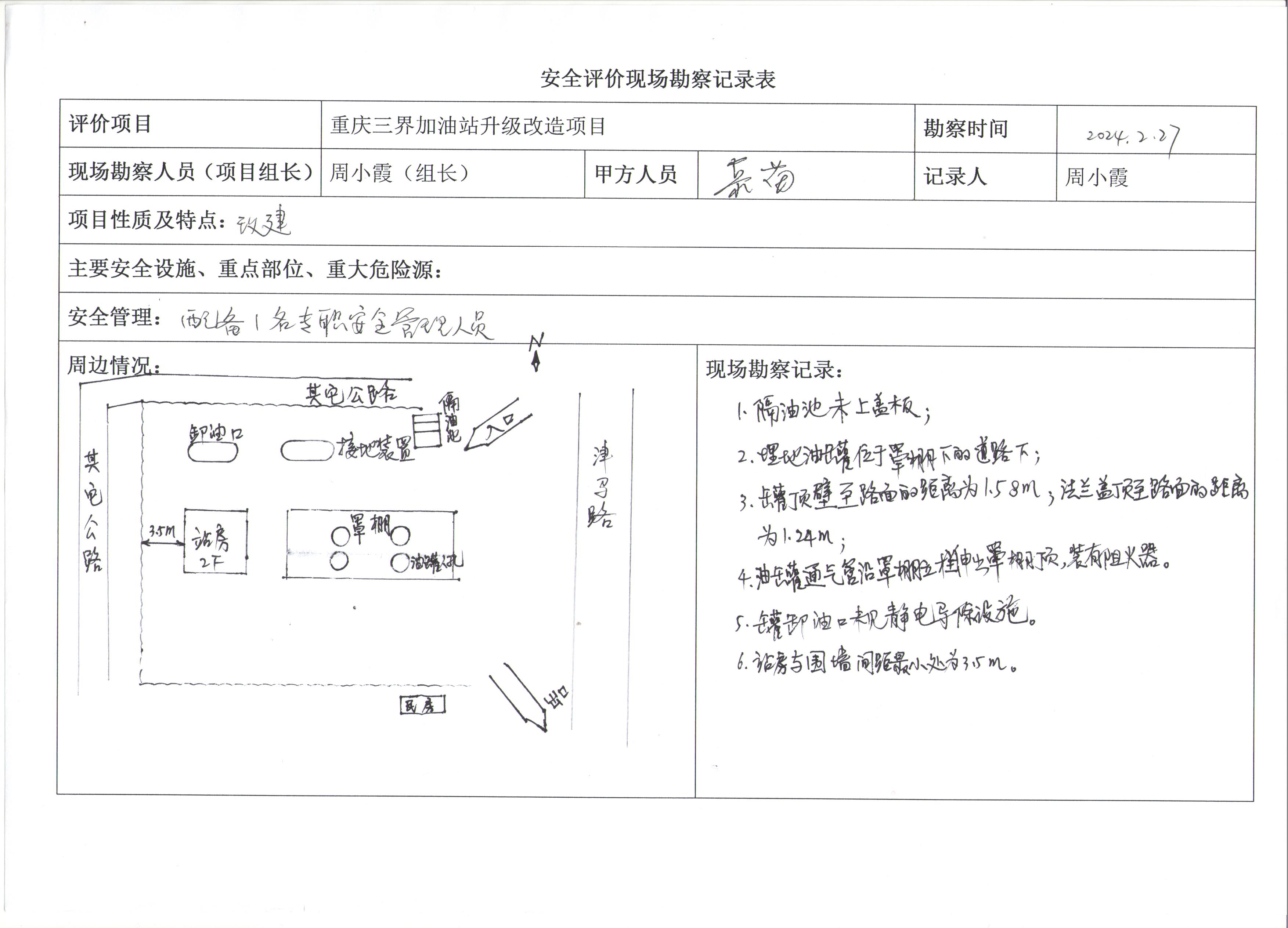 項目名稱 | 重慶三界加油站有限公司重慶三界加油站升級改造安全驗收評價 | 合同編號 | DA(渝)-PJ-20240129 | |||||