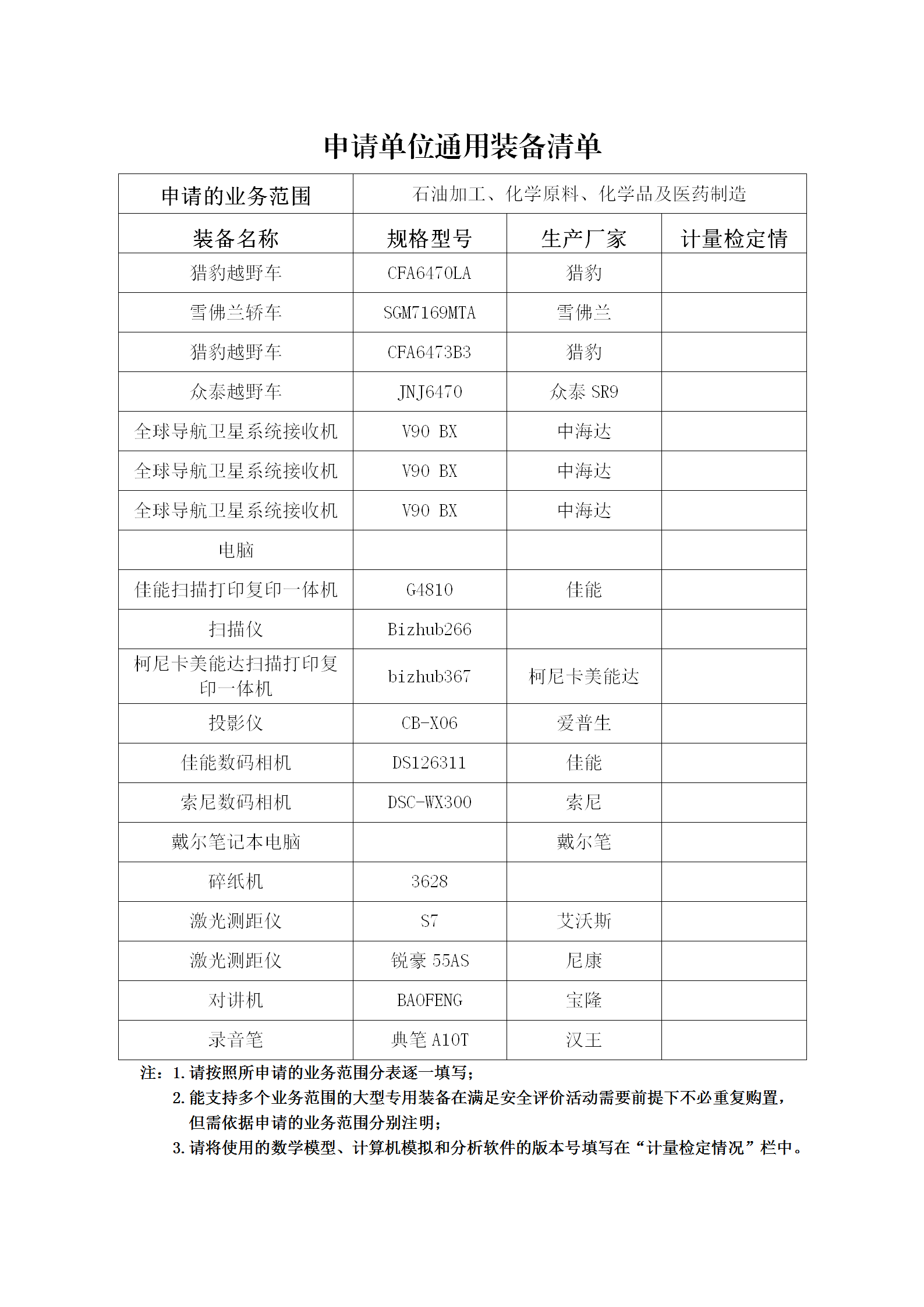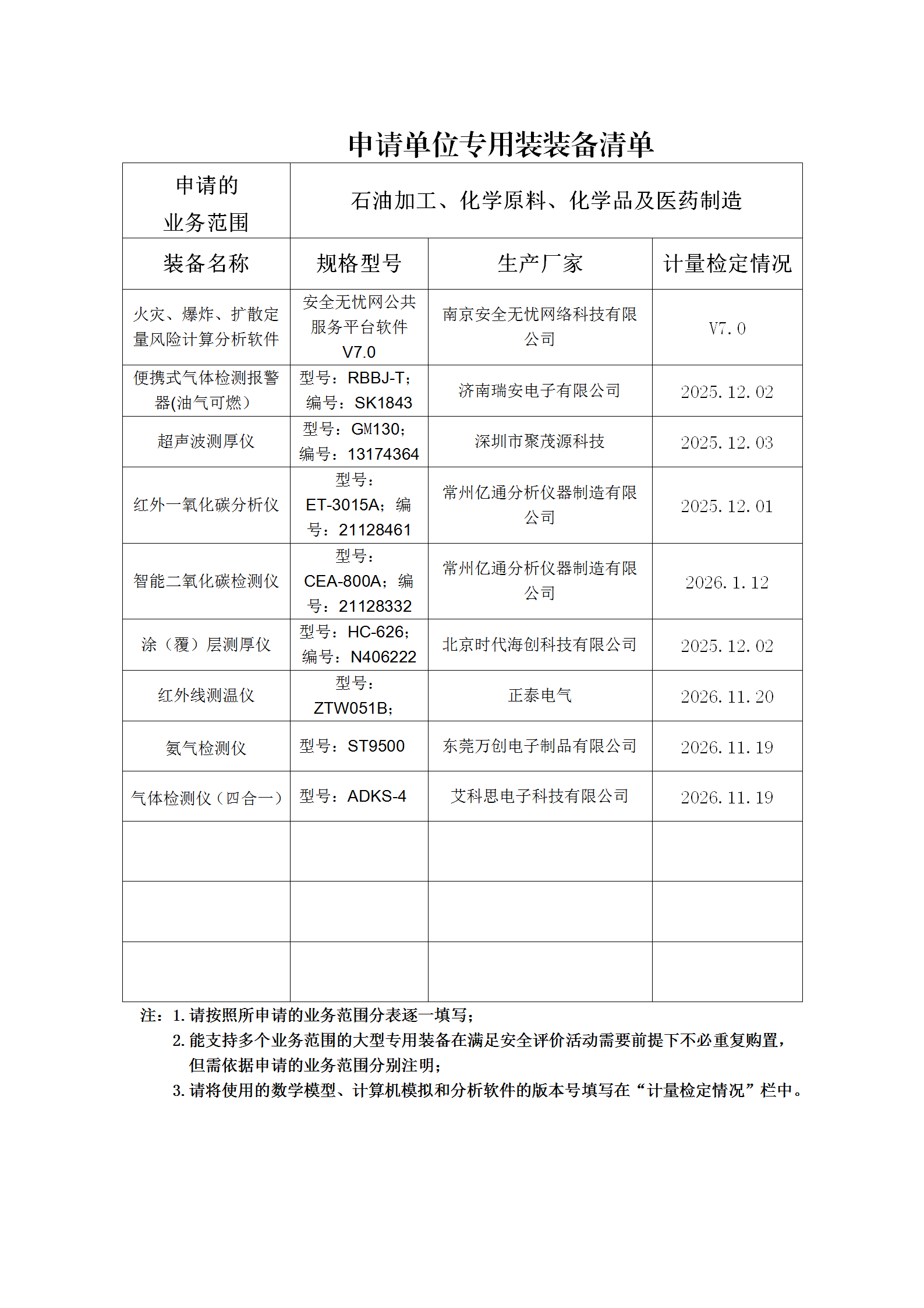 昭通市鼎安科技有限公司專(zhuān)業(yè)設(shè)備、設(shè)施一覽表